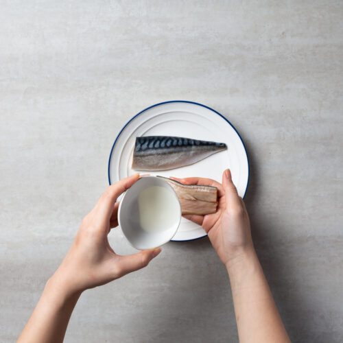 Coat the fish fillets with sake or rice wine. Let it sit for 5 minutes to get rid of the odor and enhance the texture.
