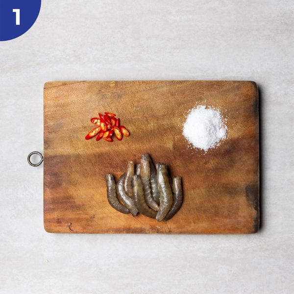 Ướp tôm với lượng muối ớt vừa đủ trong 5 phút.